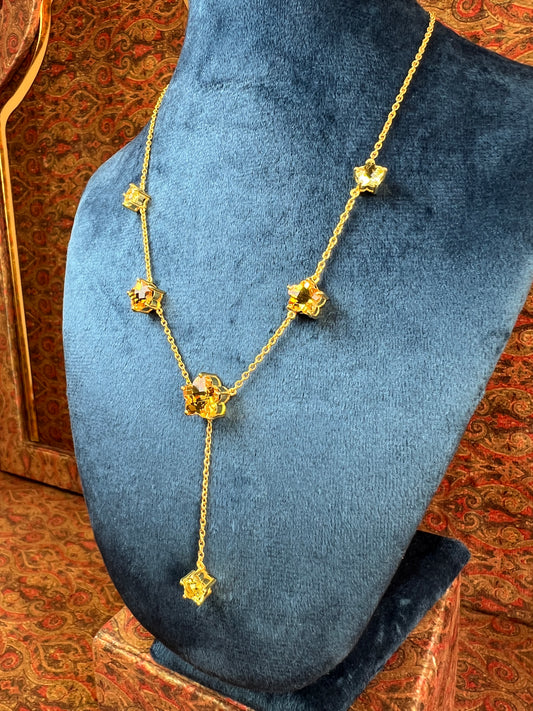 Womens Citrine Star Necklace Gold-Plated 925 Sterling Silver 6 Star Shaped Basket-Prong Settings with hanging Lemon Quartz Star