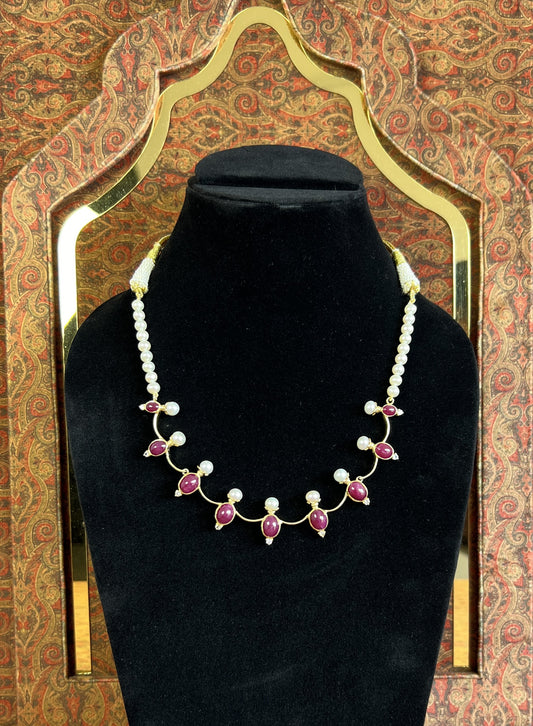 Womens Pearl and Red Ruby Necklace with White Sapphire Gemstone Accents Gold Colored Adjustable Rope with Lavish Tassel
